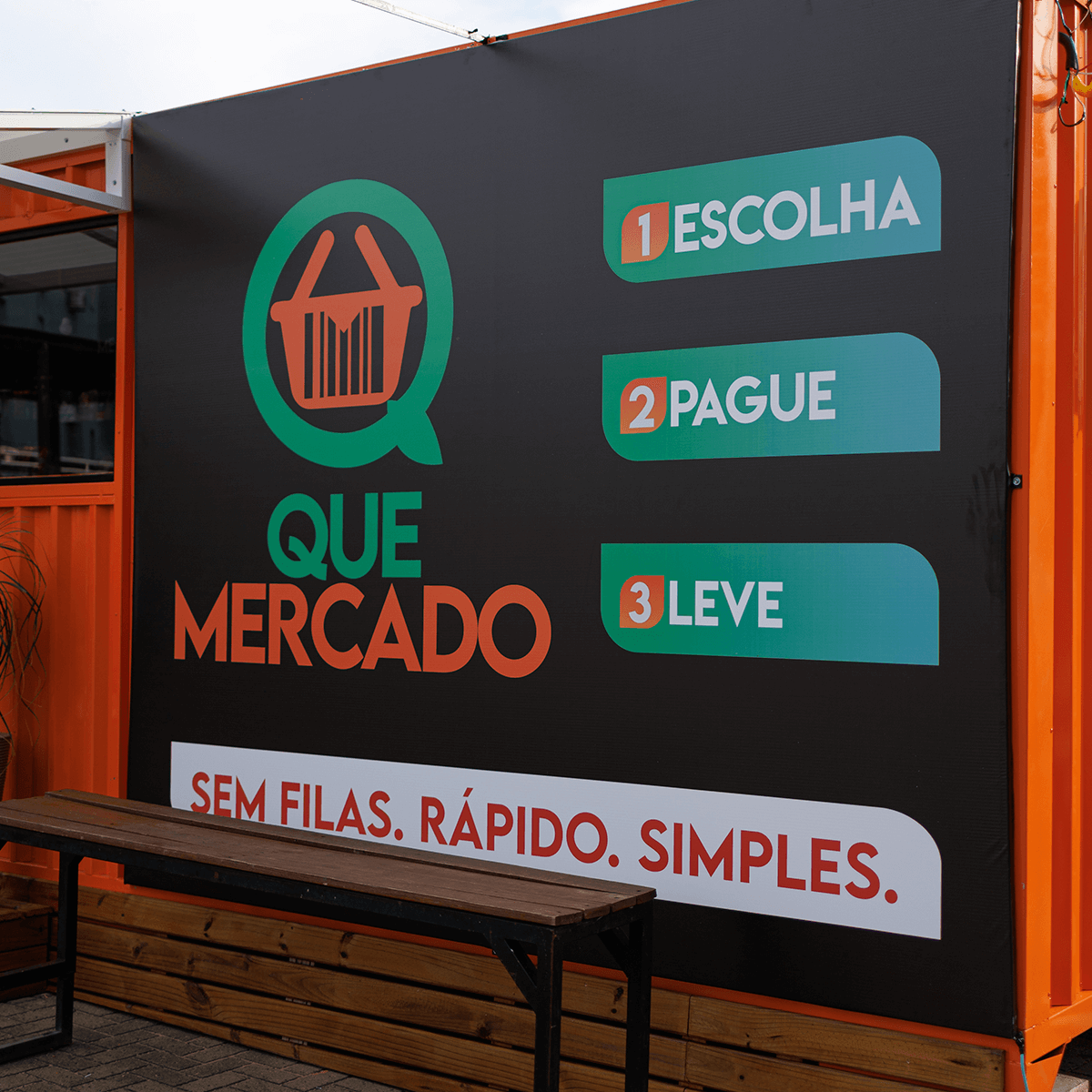 Mercado autônomo em containers, ideal para áreas de grande fluxo e fácil acesso.